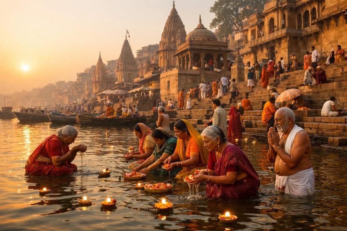Rituels du matin sur le Gange : bains, prières et gestes de purification