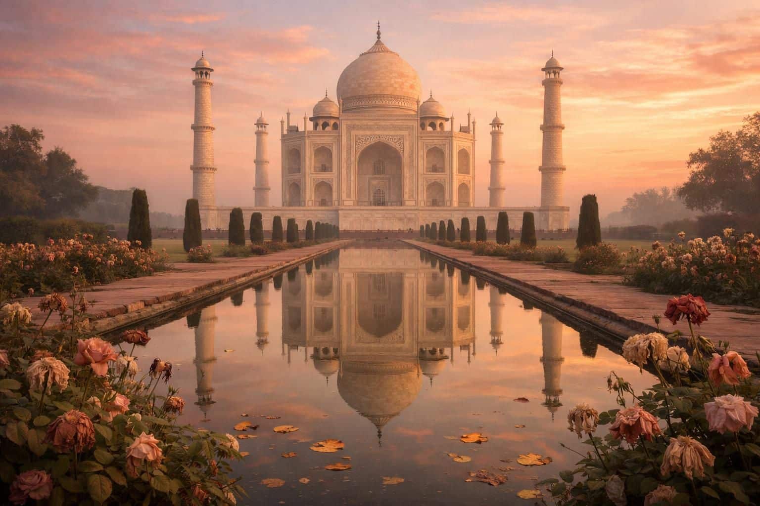 À Agra, sur la rive droite de la Yamuna, un édifice semble flotter entre la brume du matin et la chaleur du jour. Le Taj Mahal n’est pas seulement un mausolée de marbre blanc : c’est une promesse gravée dans la pierre, née d’un deuil qui a changé le visage de l’Inde moghole. On vient pour la photographie parfaite, certes, mais on reste pour ce que le monument murmure au visiteur attentif : une histoire d’amour devenue architecture, une géométrie qui apaise, une lumière qui transforme le même décor à chaque heure.