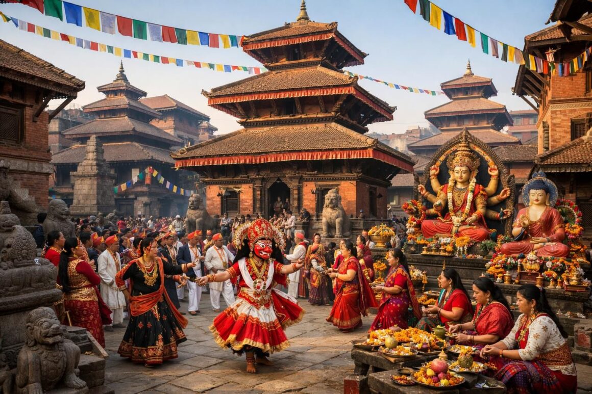 Festivals Newars et calendrier rituel : quand la ville devient scène, du masque aux tambours